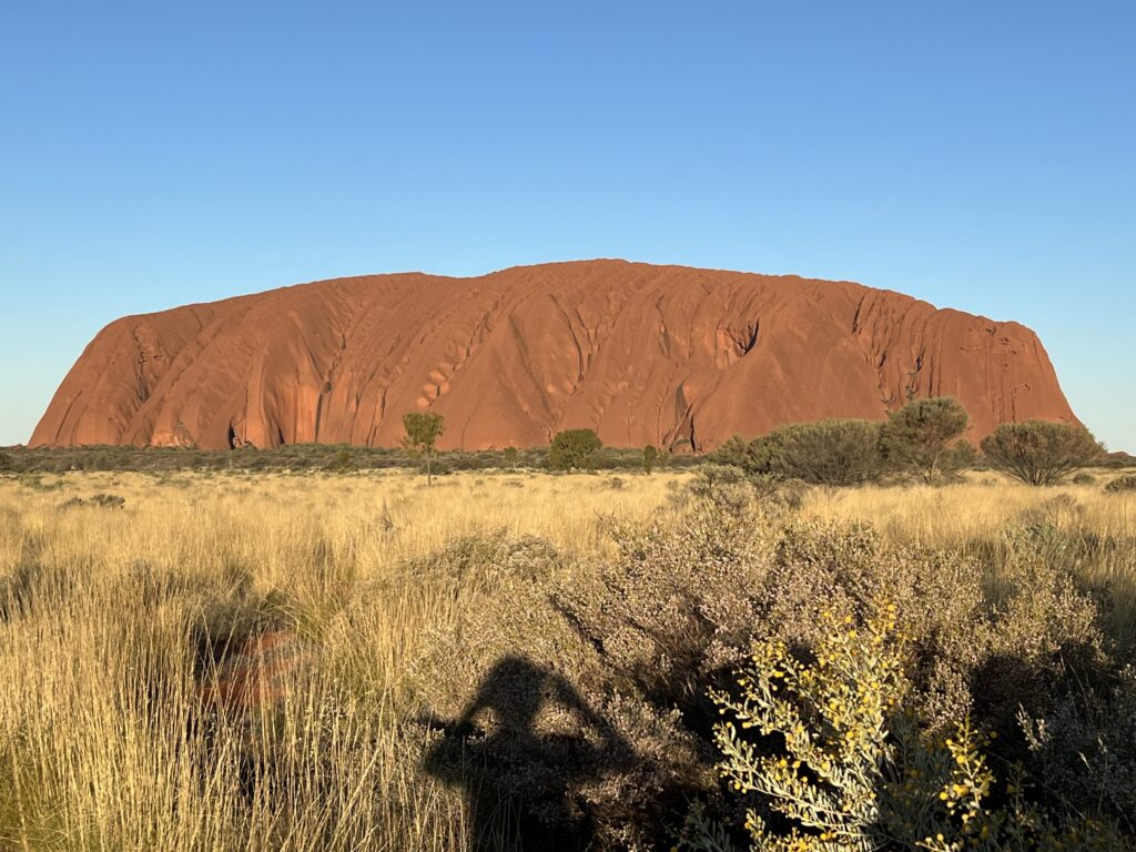 この時期の日の入りは18時半くらいで、私たちはその40分前に到着しました。色が移ろい行くウルルを楽しむにはこれがちょうどよかったです。