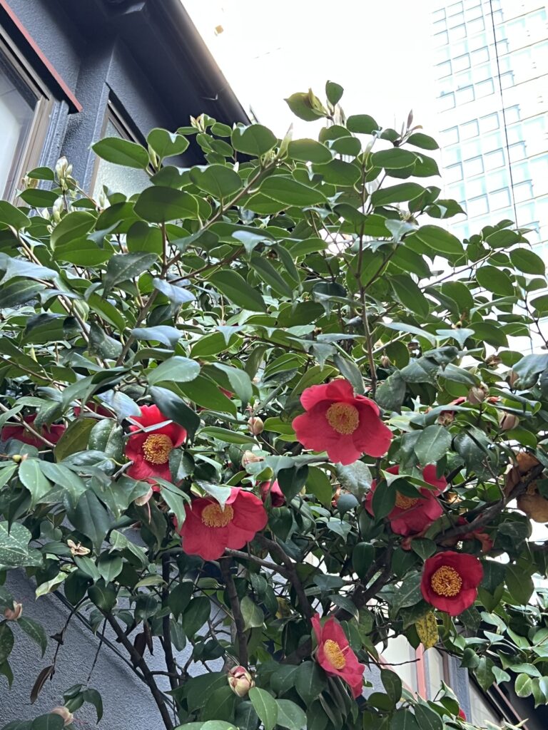 長く続いた椿の季節も桜が咲くとそろそろ終わりですが、路地に素晴らしい椿を見つけました。椿はバリエーションがとても多く、毎シーズン色々な発見がありますが、これは今年見かけた中で一番かもしれません。赤の一重咲きなので一番クラシカルなタイプですが、めったにないほど大輪で形も良いです。