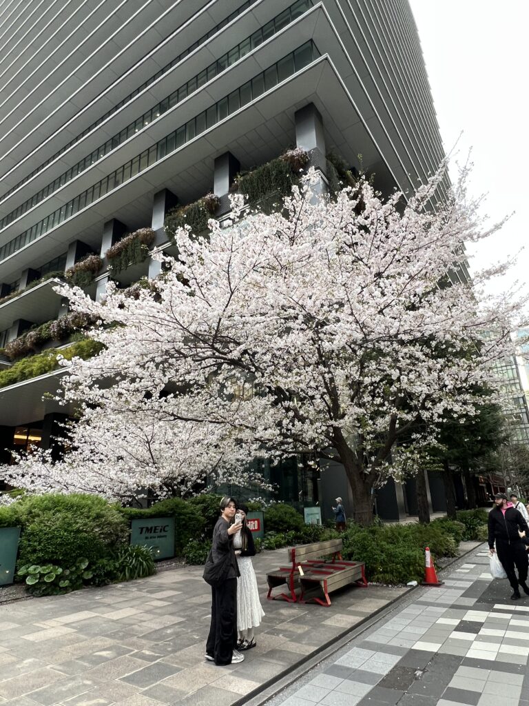 東京は桜の木が多い街だと改めて思いました。まだ満開の桜もあったものの、多くは散っている最中でした。こうして花びら舞う中を歩くというのも、考えてみれば年に一回できるかどうかの贅沢な経験です。